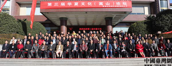 第三届华夏文化(嵩山)论坛与会嘉宾合照。(中国台湾网 郭晓康 摄)
